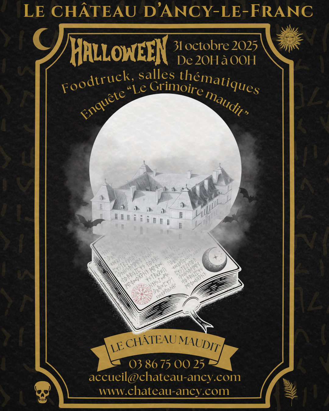This year, we are ending our traditional costume contest.But don’t worry—a brand-new surprise is joining the party! Head to the Guards’ Room (first floor, Room no. 2) and take part in a small investigation, open to both children and adults, to break the curse of an ominous grimoire threatening the château… Solve riddles, seal the cursed book, and perhaps the protectors of this place will reward you for your courage!